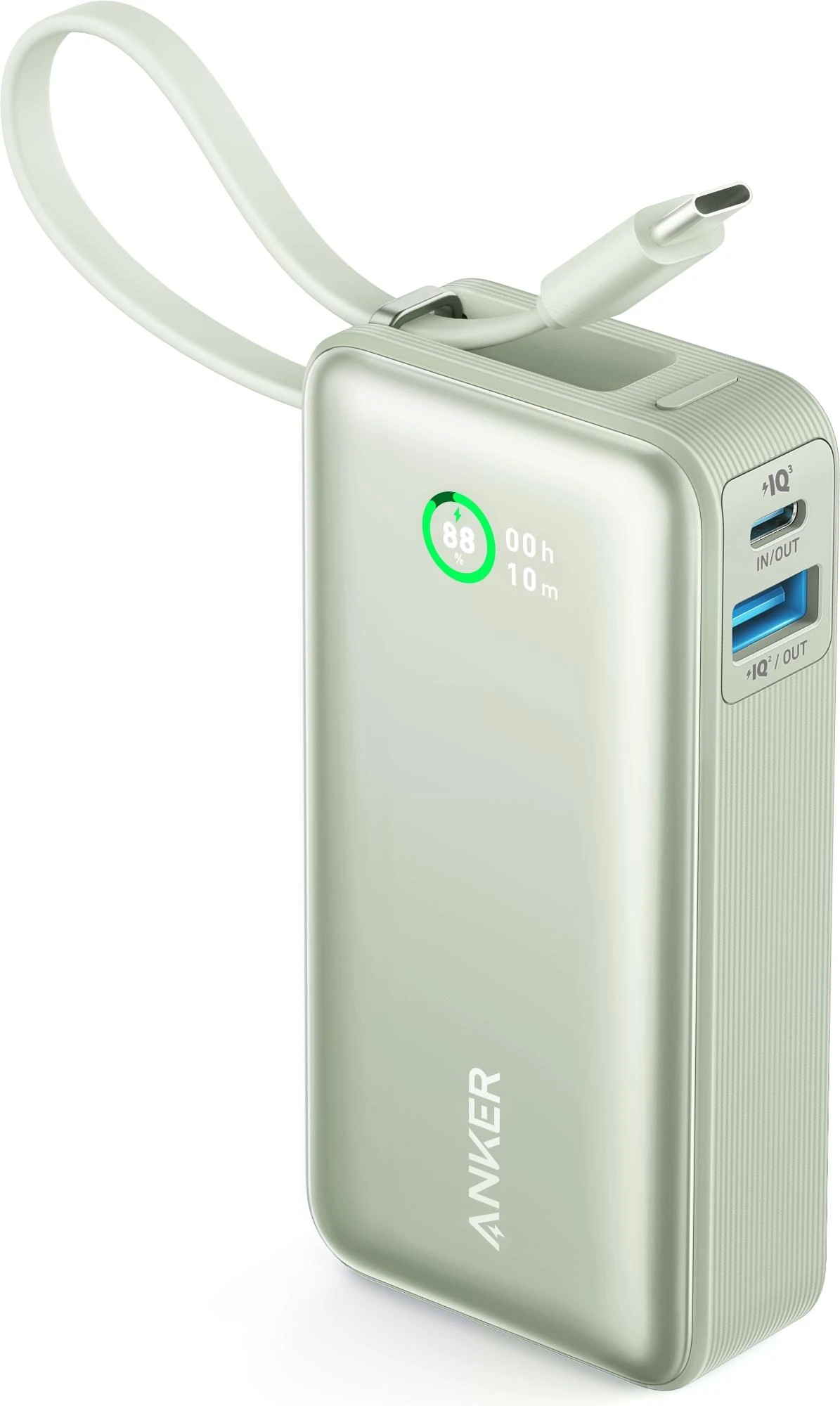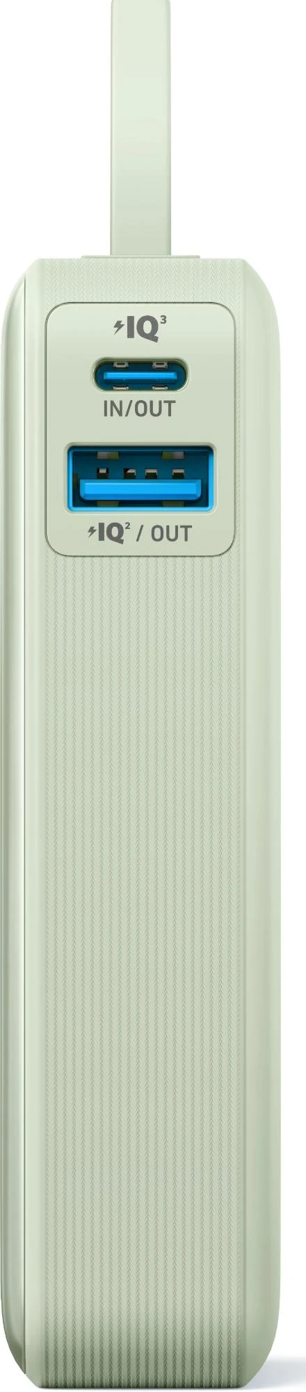 Klein und handlich, mit nur 104 × 52,3 × 26mm. Das eingebaute C- Kabel kann als Trageschlaufe verwendet werden, um die Powerbank