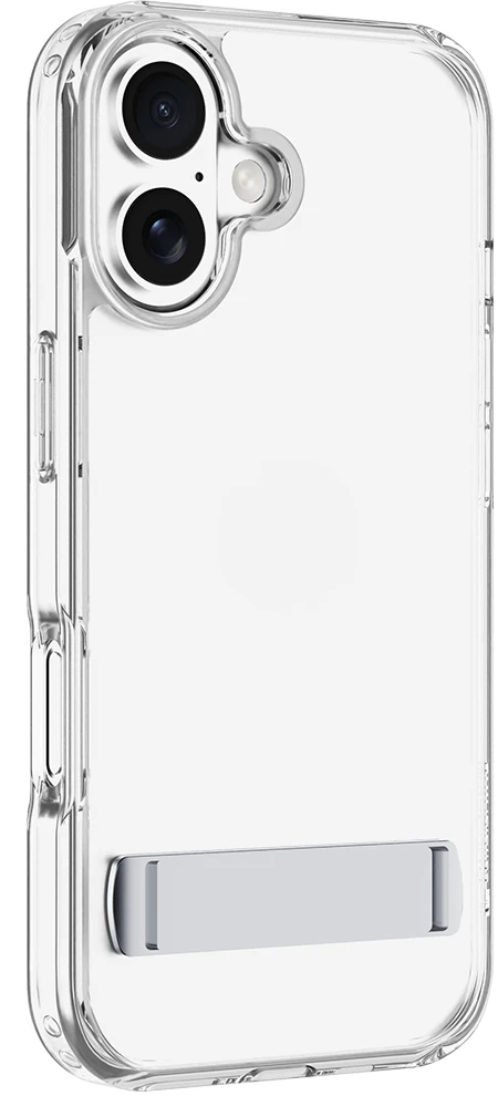 Clear Stand ist die transparente Schutzhülle mit integriertem Standfuß – ideal für freihändiges Telefonieren, Streaming oder Arbeiten. Sie besteht aus einem harten Rücken und stoßdämpfendem Gummirahmen und schützt zuverlässig vor Stößen und Stürzen. Erhöhte Kanten schützen Bildschirm und Kamera. Die antibakterielle Oberfläche und das Anti-Vergilbungs-Material sorgen für dauerhafte Hygiene und Klarheit.