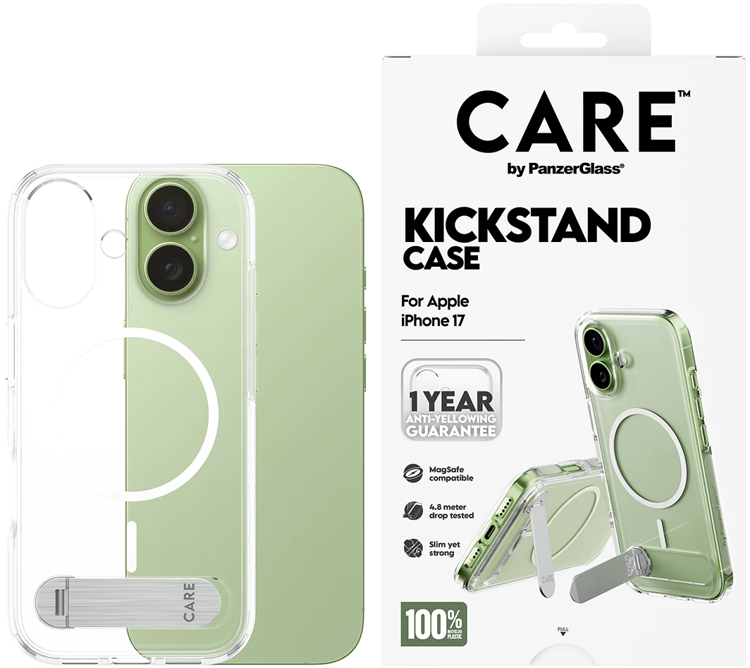 Phänomenaler Schutz. 3,6 Meter Falltest in allen Winkeln und Ecken. Hergestellt aus recyceltem Plastik. MagSafe kompatible und ohne Wenn und Aber: 1 Jahr Anti-Vergilbungs-Garantie. Diese schlanke und leichte schützende Hülle ist alles, wovon du jemals geträumt hast. Eines der am meisten erwarteten Produkte ist jetzt erhältlich. Entworfen, um praktisch zu sein. Diese Hülle verfügt über eine zusätzliche, vielseitige Kickstand-Funktion zum freihändigen Betrachten, sowohl vertikal als auch horizontal. So kannst du oder deine Kinder überall und jederzeit freihändig Filme schauen, streamen oder Yoga-Kurse besuchen. Außerdem bietet die Hülle einen verbesserten Schutz für die Kamera. DARE TO CARE CARE ist eine verspielte und schützende internationale Tech- und Lifestyle-Marke, die aus den hochwertigsten Materialien hergestellt und von Mode-, Kunst- und Musiktrends beeinflusst wird. Wir kümmern uns um Menschen und die Welt, in der wir leben. Wir legen Wert auf Nachhaltigkeit und Selbstdarstellung. Wir kümmern uns um Technik und die Lebensdauer von Technik. Verwandle dein Handy in ein stilvoll geschütztes Accessoire. Zeig der Welt, dass du dich um sie sorgst.